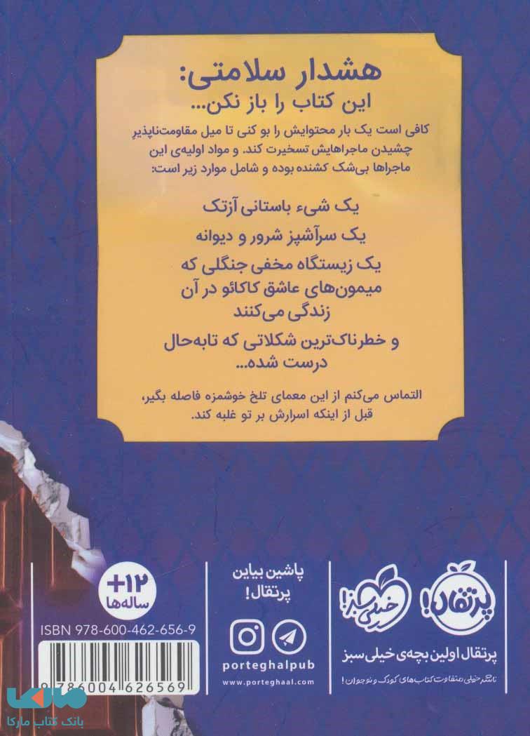 موضوع کتاب این کتاب برایت ضرر دارد نشر پرتقال، حول محور شکلات و طرز تهیه ی آن می چرخد. بدین صورت که یک ماده ی جادویی به نام دیاپازون وجود دارد که قادر است هر مزه ای را به هر غذایی بدهد. به همین دلیل برای هر سرآشپزی بسیار ارزشمند است. چرا که با داشتن آن می تواند هر مزه ای که دلش خواست را در غذا ایجاد کرده و مشتریان را به خود جلب کند. یکی از شخصیت های اصلی این داستان فردی به نام هوگو است. هوگو یک شخصیت پلید در این داستان می باشد. او برای به دست آوردن جادوی دیاپازون هر کاری می کند. او مادر کاس را گروگان گرفته تا راز خوشمزه ترین شکلات دنیا را به دست آورد. حالا مکس و کاس که از دیگر شخصیت های داستان هستند به دنبال آزادی مادر کاس و افشای پلیدی هوگو می باشند. به این ترتیب داستانی هیجانی و دلهره آور رقم می خورد.