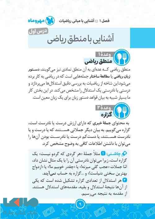 تمام درسنامه های این کتاب به مراحل و وعده هایی تقسیم شده اند و این باعث می شود یاد نگرفتن و درک نکردن یک مرحله، در یادگیری سایر مراحل خللی وارد نکند. پس از اتمام مراحل مختلف یک قسمت و نتیجه گیری کلی از آن قسمت مثال هایی متناسب با این نتیجه گیری و مراحل آن ذکر شده است و پاسخ هر مثال نیز به صورت کاملا تشریحی به دنبال مثال نوشته شده است، این مثال ها و پاسخنامه های آنها به قدری روان است که حتی دانش آموزان بازیگوش که در مطالعه درس های خود دقت کافی ندارند نیز جذب آنها می شوند و با علاقه و دقت تمام آنها را مطالعه می کنند.