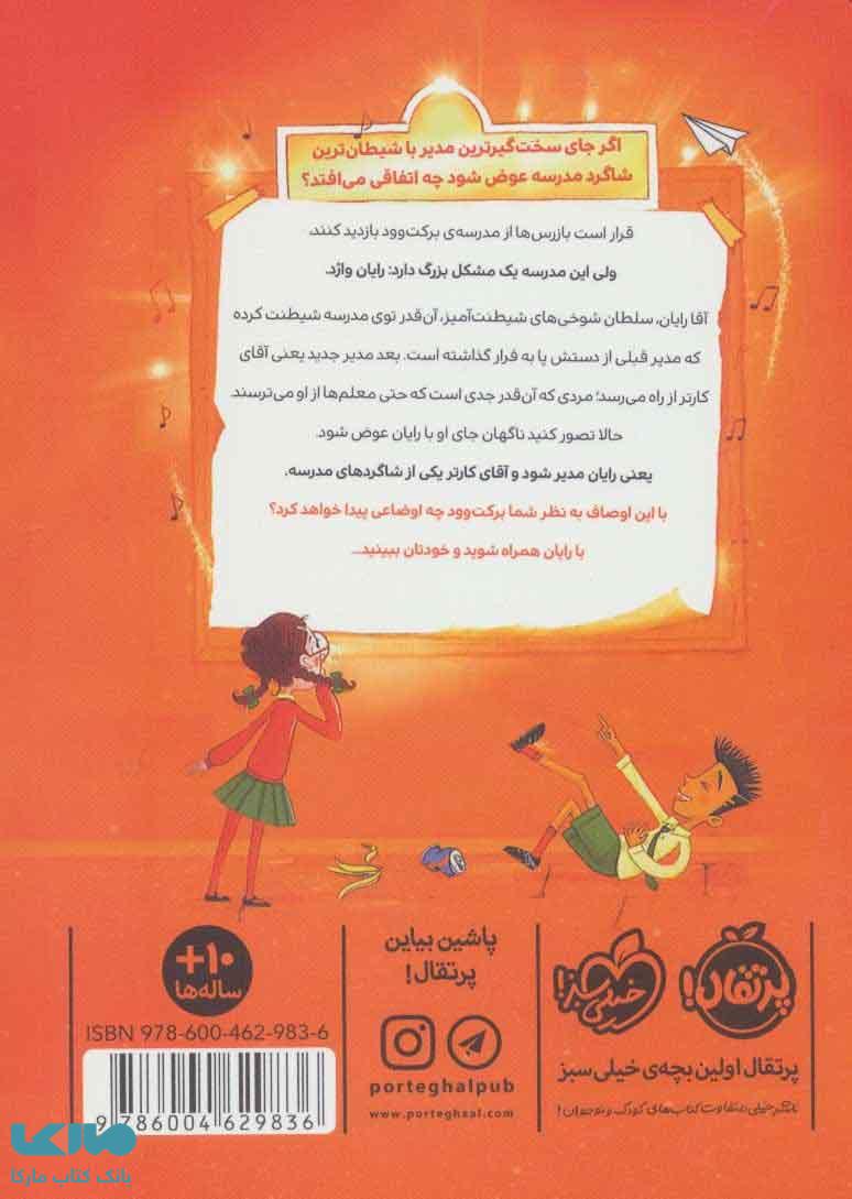 داستان کتاب بچه مدیر از این قرار است که بازرس ها می خواهند از مدرسه برکت وود بازدید کنند. اما این مدرسه یک مشکل بزرگ به نام رایان وارد دارد. او کسی است که آن قدر در مدرسه شیطنت کرده که مدیر قبلی را فراری داده است. الان هم مدیر جدید به مدرسه آمده است؛ یک مدیر جدی که همه حتی معلم ها از او می ترسند. می توانید تصور کنید که رایان جایش عوض شود؟ یعنی رایان می تواند مدیر باشد و مدیر یکی از شاگردهای مدرسه باشد و کنار بچه ها بنشیند؟ یعنی جای شیطان ترین بچه مدرسه با مدیر عوض شود. این کتاب پر از ماجراجویی های بامزه را انتشارات پرتقال برای شما چاپ کرده است.