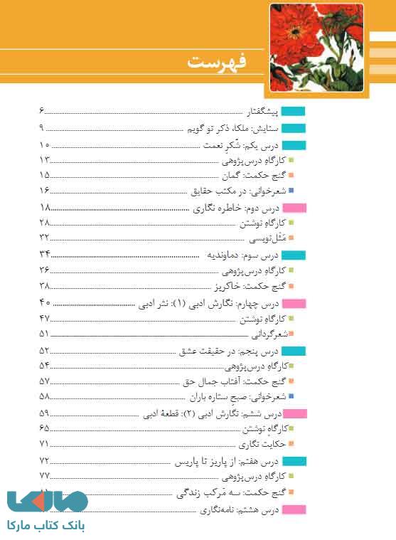 فهرست کتاب درسی فارسی و نگارش 3 دوازدهم