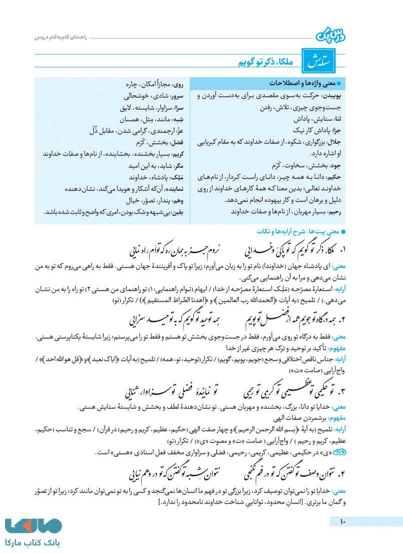برای همه ی پرسش ها، تمرین ها، فعالیت ها و … که در کتاب های درسی موجود است، پاسخ های دقیق و کاملی ارائه شده است. البته در این بخش ترتیب مندرج در کتاب درسی نیز رعایت شده است.