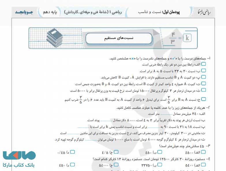 در حال حاضر امکان خرید آنلاین کتاب ریاضی راهنما ریاضی ۱ فنی پایه دهم در بانک کتاب مارکا فراهم شده است و دانش آموزان می توانند این کتاب را به صورت آنلاین و در عین حال با یک تخفیف مناسب خریداری نمایند.