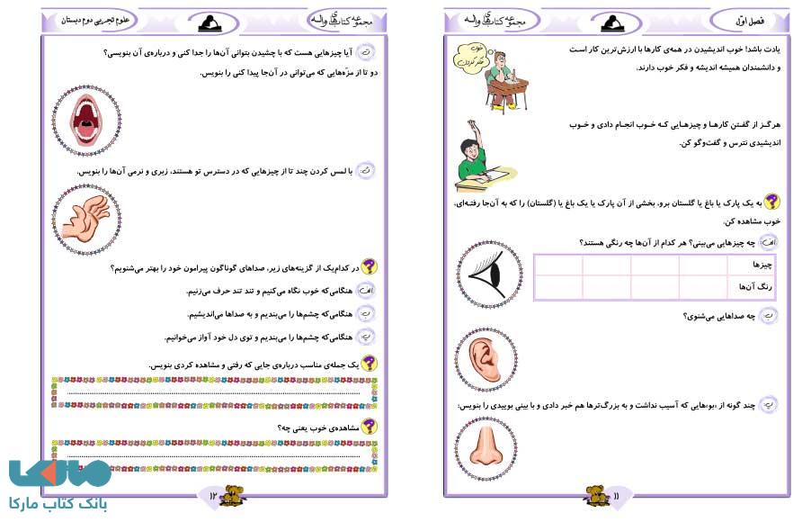در واقع، هر یک از دروسی که در کتاب علوم تجربی دوم دبستان آدم برفی نشر واله پوشش داده شده اند، دارای دو بخش اصلی درسنامه و بخش سوال ها می باشند. بیان جالب و جذاب درسنامه های موجود در کتاب باعث می شود که دانش آموزان به راحتی بتوانند با این کتاب کمک آموزشی ارتباط برقرار کنند.
