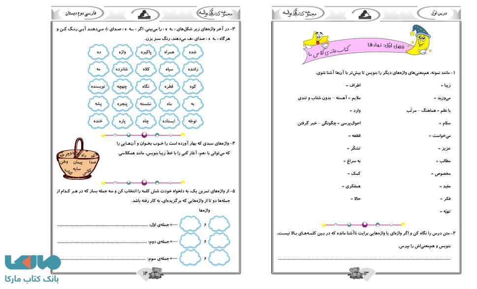 جالب است که بدانید این کتاب فقط مختص دانش آموزان نیست. بلکه معلمان محترم پایه دوم دبستان می توانند برای داشتن نمونه سوال های مختلف از این کتاب استفاده کنند. البته معلمان عزیز می توانند در صورت لزوم کتاب فارسی دوم دبستان را به عنوان یک کتاب کمک درسی به دانش آموزان خود معرفی کنند و از آن ها درخواست کنند که تمرین های موجود در این کتاب را به عنوان کار در منزل انجام دهند.