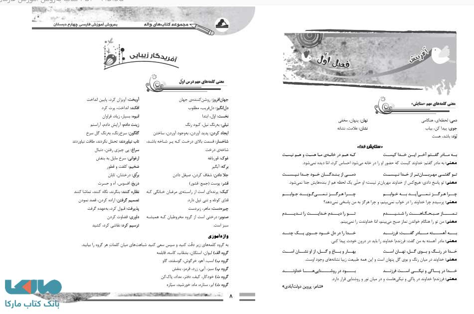 بخش های مختلف کتاب فارسی چهارم دبستان به روشاگر می خواهید که کتاب فارسی چهارم دبستان به روش را خریداری کنید، توصیه می کنیم که ابتدا از بخش های مختلف این کتاب آگاه شوید و سپس این کتاب را خریداری کنید. به طور کلی این کتاب از بخش های مختلف زیر تشکیل شده است.