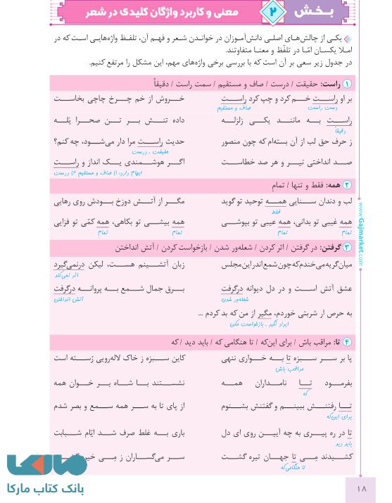 کتاب مفهوم و قرابت های معنایی فارسی کنکور سری مینی میکرو طلایی و ویژگی های آن کتاب مفهوم و قرابت های معنایی فارسی جامع کنکور سری مینی میکرو طلایی ویژگی های متعددی دارد که می توان به جامع بودن آن، وجود پاسخ نامه های تشریحی، وجود سوال های مهم و پرتکرار، آموزش نحوه خواندن درست سوال ها، وجود آزمون های جمع بندی شده، ارائه خلاصه بندی مطالب، استفاده از رنگ های منحصر به فرد متناسب با هر بخش و …. اشاره کرد. به عبارت دیگر :