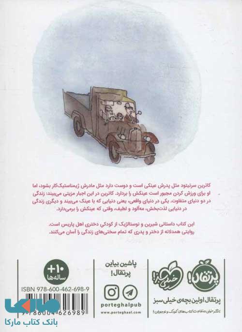 کتاب پاریسِ من و پدرم درباره ماجراهای دختری به نام کاترین است. کاترین مانند پدرش عینکی است و دلش می خواهد مانند مادرش ژیمناستیک کار کند. ولی او به دلیل این که عینک می زند، باید عینکش را در زمان ورزش کردن بردارد. کاترین این اجبار را مثل یک مزیت می بیند؛ او با این کار زندگی در دو دنیای متفاوت را تجربه می کند. یکی از این دنیاها مربوط به دنیای واقعی می شود که با عینک می بیند و دنیای بعدی هم پر از خیال است و برای وقتی است که عینکش را بر می دارد. این دنیا به نظرش لذت بخش، مه آلود و لطیف است. برای این که بیشتر با این دنیای تخیلی کاترین آشنا شوید، این کتاب انتشارات پرتقال را بخوانید.