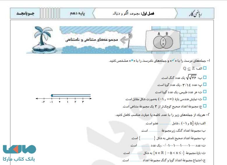 مجموعه سوال های مختلف کتاب ریاضی کار دهم جویامجدکتاب کار ریاضی دهم از سوال های مختلفی تشکیل شده است که هر کدام از این سوالات به صورت خاصی به دانش آموزان ارائه شده اند.