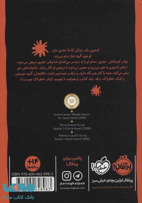 کتاب کنسرت طبل های غمگین همان طور که از نامش پیدا است درباره موسیقی است. استیون، قهرمان داستان، یک زندگی خیلی معمولی دارد. او در گروه جاز مدرسه درام می نوازد. برادر کوچک ترش مدام او را دچار دردسر می کند، ولی وقتی بیمار می شود، استیون مجبور می شود با بیماری او کنار بیاید. در واقع، بیماری جفری، برادر کوچک تر، دنیای او را بر هم می ریزد. خانواده اش نیز در تلاش هستند تا همه چیز را مرتب نگه دارند. آنها از مراقبت از تکالیف مدرسه، گروه موسیقی که در آن درام می زند و یک کیک خطرناک دست بر نمی دارند. اگر می خواهید داستان این کیک خطرناک را بدانید، این کتاب انتشارات پرتقال را تهیه و با استیون همراه شوید.